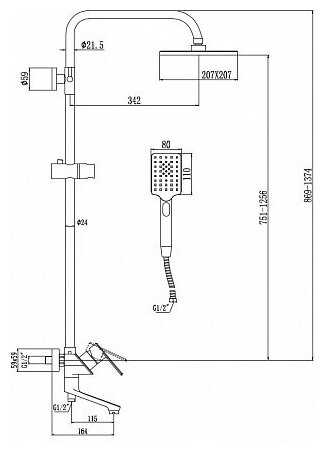 | Высота стойки для душа : | 1410 мм |