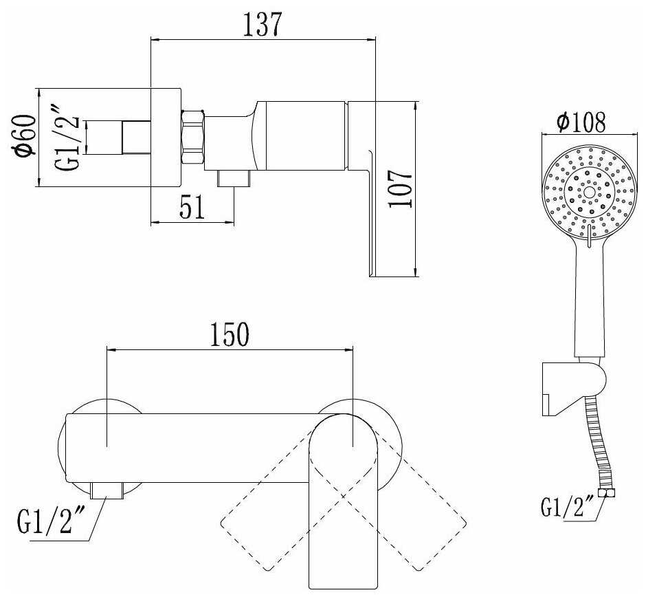 | Комплектация : | лейка, ручной душ, смеситель |