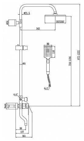 | Комплектация : | верхний душ, душевая стойка, излив для набора воды, лейка, ручной душ, смеситель, шланг |