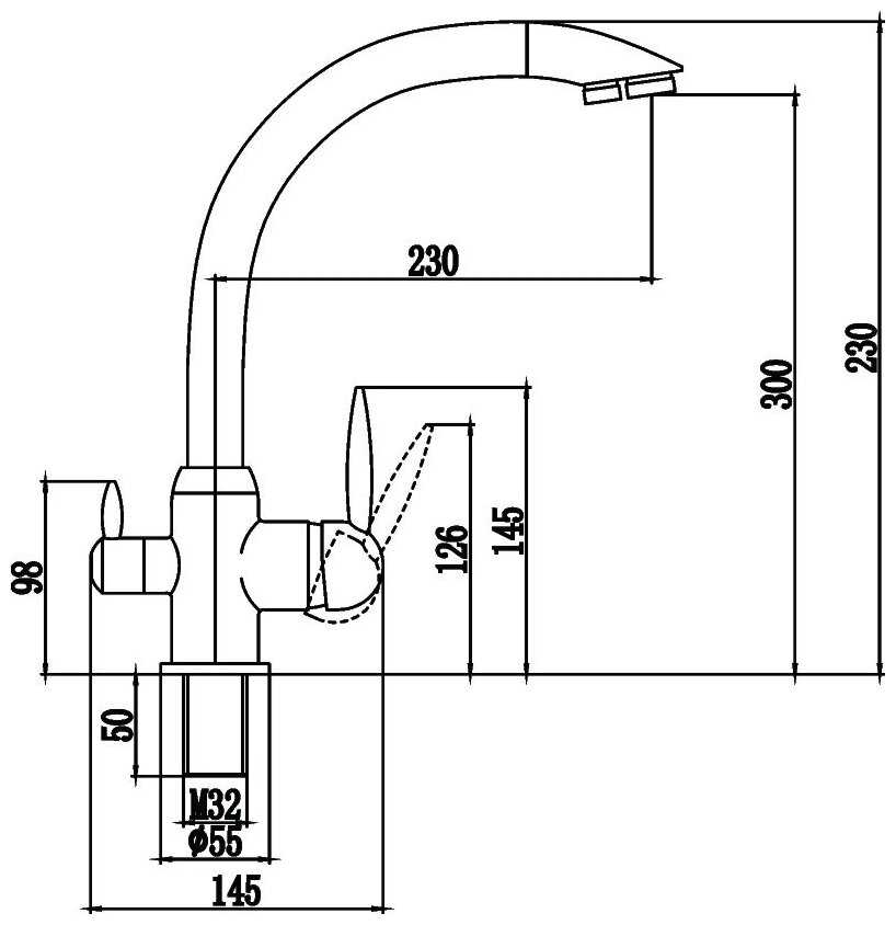 - высота излива: 300 мм.