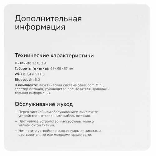 Дополнительная информация : | работает в стереопаре и мультирум, три ассистента: Джой Афина Сбер, наличие детектора шума, обучает и развлекает детей |