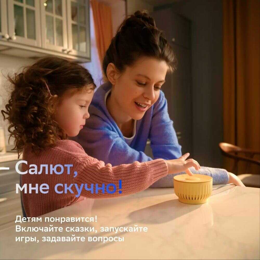 Через приложение SberSalute активируется "Детский режим" с ограничением нежелательного контента и функцией "Пейджер": родители могут отправлять голосовые сообщения с других устройств Sber (например, "Иди ужинать"). Колонка автоматически фильтрует запросы, связанные с покупками или недетскими темами, а микрофон отключает запись фоновых шумов при бездействии.