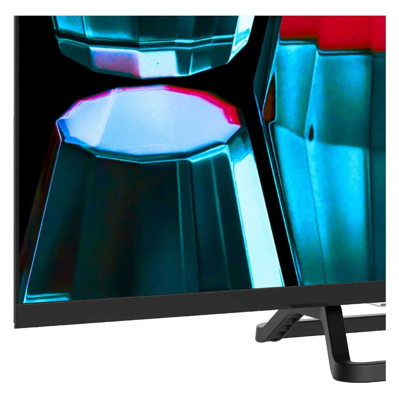 Телевизор обеспечивает четкую картинку с разрешением Full HD, приемлемой яркостью и детализацией, что достаточно для своего ценового сегмента. Однако цветопередача имеет специфический характер: многие отмечают излишне яркий белый цвет, завышенную контрастность и неестественный красный оттенок, который невозможно полноценно исправить в настройках. Углы обзора скромные, для комфортного просмотра без искажения цветов и контраста необходимо располагаться прямо напротив экрана. -