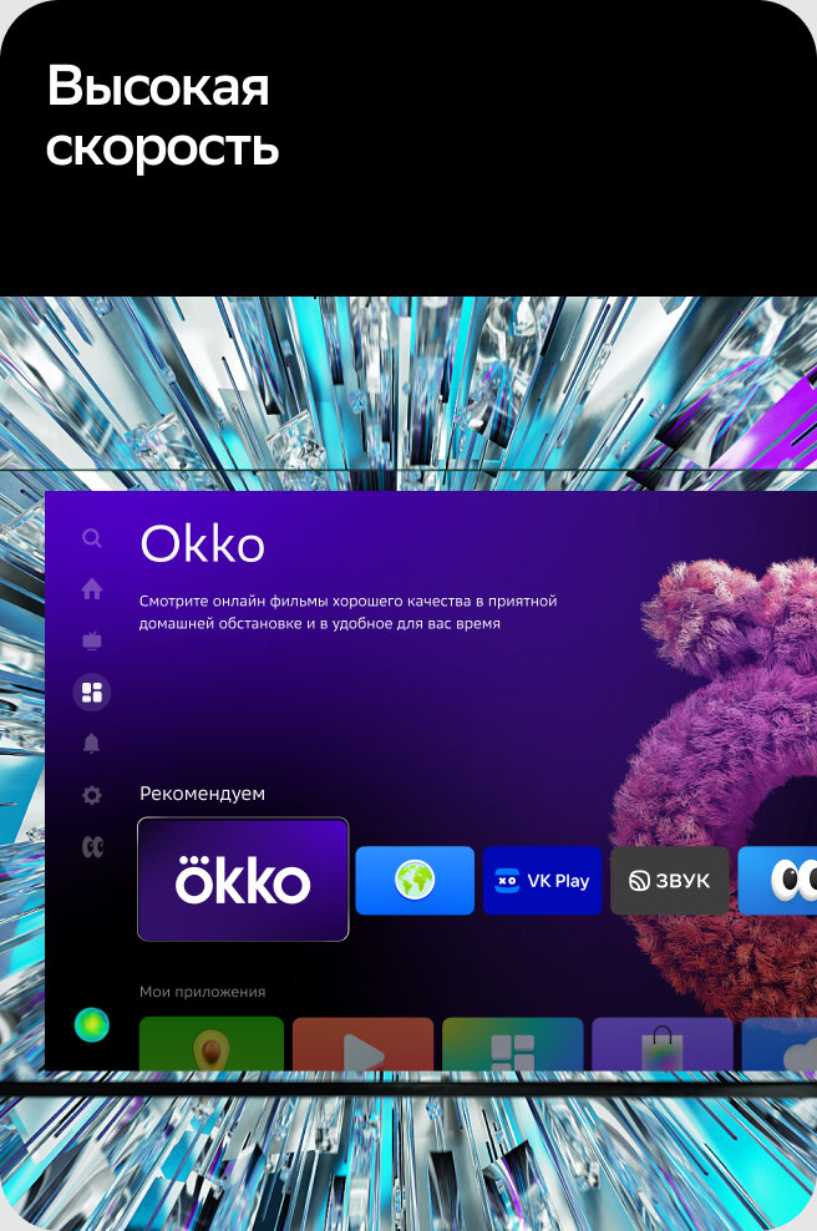 Встроенные приложения онлайн-кинотеатров (More.tv, IVI, Okko, Kinopoisk) в целом работают стабильно, но скорость их запуска и отклика может варьироваться. Некоторые пользователи отмечают, что Okko или Kinopoisk могут дольше загружаться, особенно при переключении профилей. Качество потокового видео соответствует возможностям HD Ready-экрана. Периодические подвисания чаще связывают с общей загруженностью системы или скоростью интернет-соединения, а не с самими приложениями. -