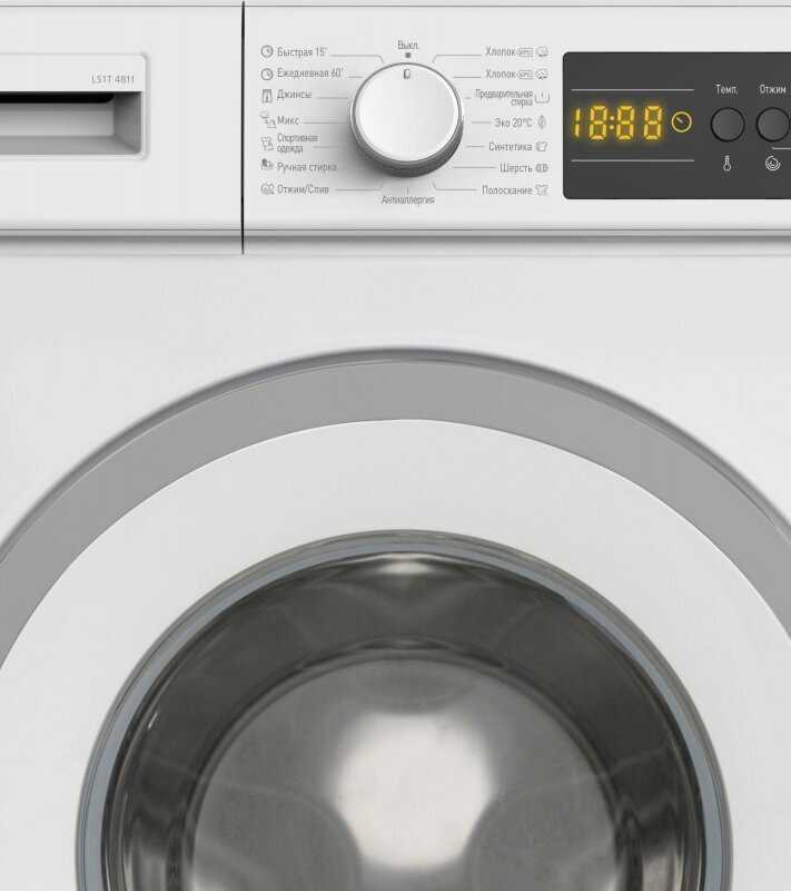 - Четкая сегментная индикация текущего этапа стирки исключает путаницу.