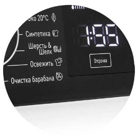 контроль баланса, отложенный старт, сигнал окончания стирки, контроль за уровнем пены, прямой впрыск, выбор скорости отжима, выбор температуры стирки, интеллектуальное управление стиркой, очистка барабана