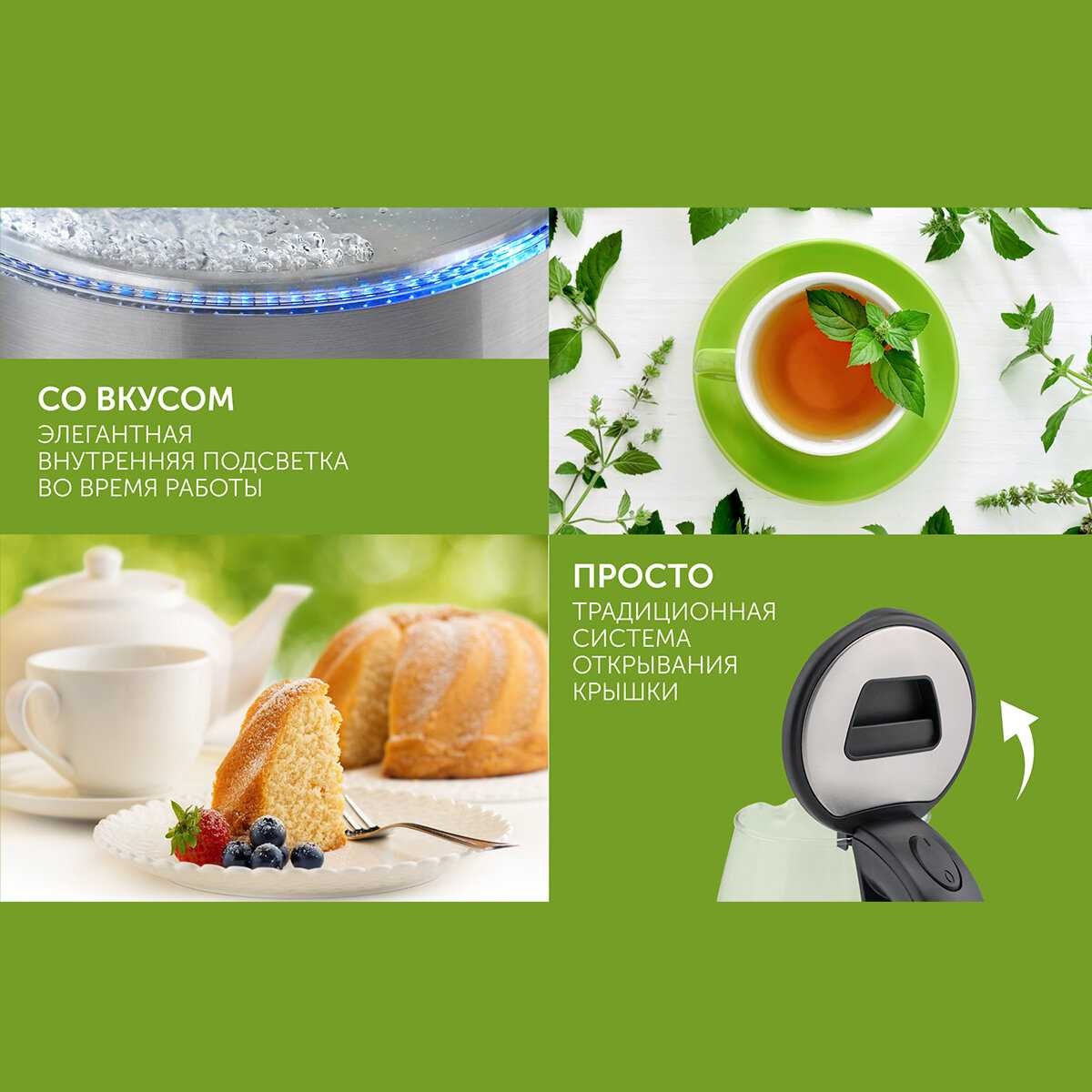 - Эффективная работа нагревательного элемента с быстрым кипячением: