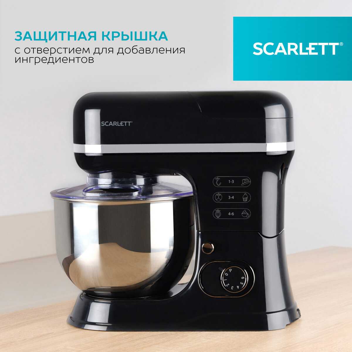Основные функции и производительность: Миксер Scarlett SC-049 демонстрирует надежную работу при выполнении стандартных кухонных задач, таких как взбивание белков, желтков, сливок, приготовление кремов и жидкого теста для блинов. Пользователи подтверждают, что с этими операциями устройство справляется эффективно, обеспечивая воздушную консистенцию без комочков. Однако при работе с охлажденными твердыми продуктами, например, со сливочным маслом прямо из холодильника, миксер перегружается, начинает перегреваться и издавать характерный гудящий звук, что указывает на недостаточный крутящий момент двигателя для подобных нагрузок. Для замеса плотного теста, требующего значительного усилия, используются специальные крюки, входящие в комплект, но продолжительность непрерывной работы с ними также ограничена. Эмпирические данные показывают, что оптимальное время непрерывной эксплуатации не должно превышать 10 минут, после чего требуется пауза для остывания корпуса двигателя. Это техническое ограничение напрямую связано с конструкцией двигателя и системой охлаждения, что является типичным для устройств данного класса мощности.