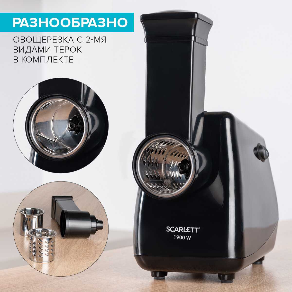 - Насадка для шинковки капусты и тёрки для моркови обеспечивают равномерную нарезку без ручного труда.