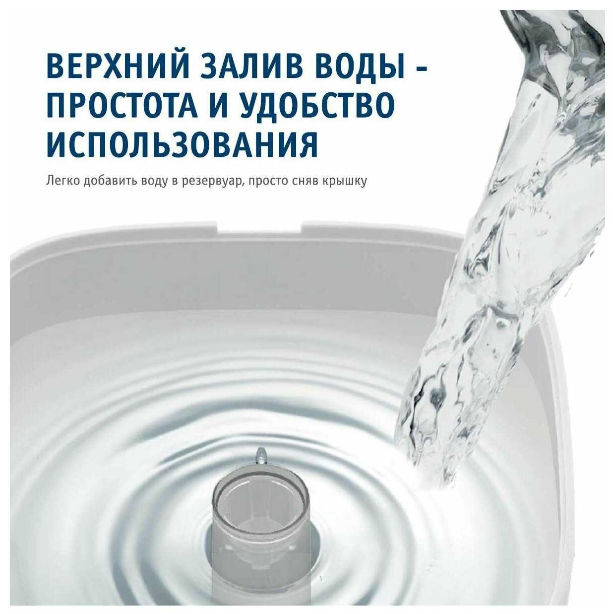 Для меня он хорош по всем параметрам: никакого конденсата и воды от него нет, верхний залив воды, хороший объем, на дисплее показывает процент увлажненности, автоматически отключается если нет воды, синхронизация с телефоном