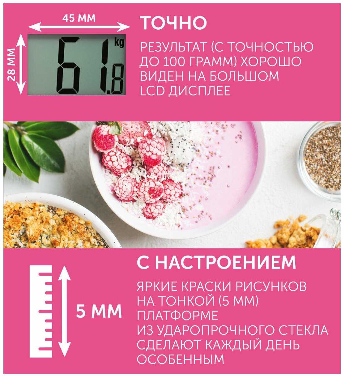 Погрешности в работе весов не заметил, показывают точно. Очень симпатичный и компактный дизайн, что позволяет весам не привлекать к себе внимания в комнате, а также занимать крайне мало пространства.