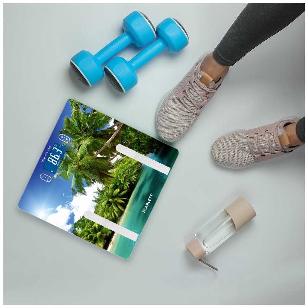 - Яркий и мотивирующий внешний вид с изображением пляжа и пальм, который стимулирует к контролю веса и похудению.