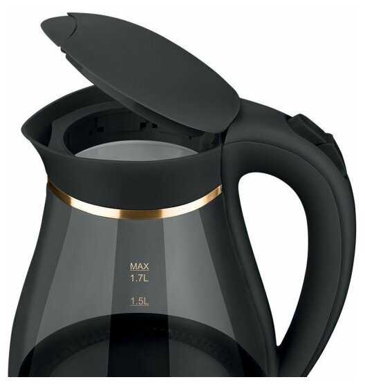 - Удобная нескользящая ручка и автоматическое открытие крышки на 90 градусов упрощают налив и мытье, широкое горлышко облегчает очистку.