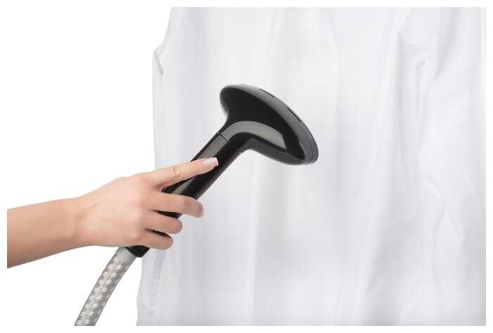 Эргономика прибора вызывает противоречия. С одной стороны, компактность и вес 4.2 кг удобны для хранения в малогабаритках, с другой — отсутствие колёс и короткий шланг усложняют обработку крупных вещей (например, ковров). Телескопическая стойка решает проблему с длинными платьями, но её шаткость при нагрузке выше 3 кг требует осторожности. Комплектация (варежка, щётка, брючная вешалка) продумана, но качество аксессуаров среднее — варежка быстро изнашивается при активном использовании.