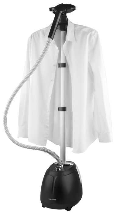 - Телескопическая стойка регулируется по высоте (до 160 см), позволяя обрабатывать шторы, пальто и длинные платья.