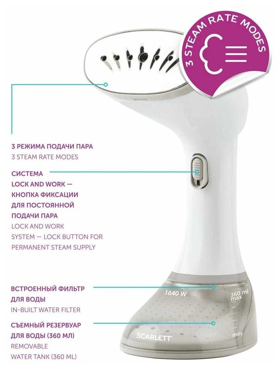 - + Маленький, удобный, три режима силы пара, есть кнопка фиксации, бак для воды съемный.