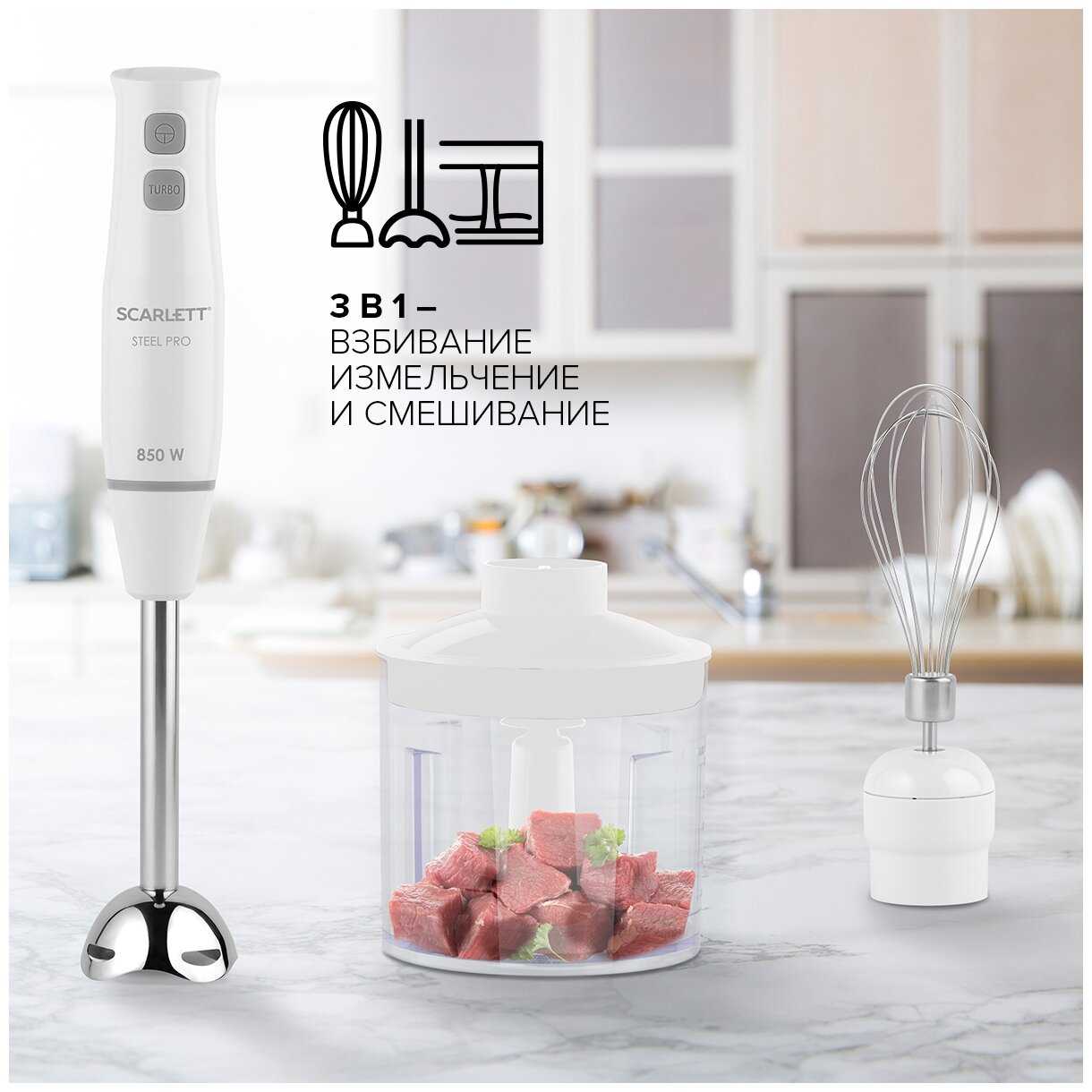 - Погружная часть из нержавеющей стали устойчива к коррозии и не впитывает запахи продуктов.