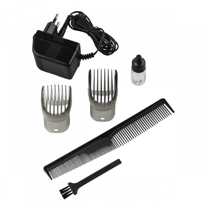 - + Работа от сети и от аккумулятора, 18 настроек длины, 2 съемных гребня.