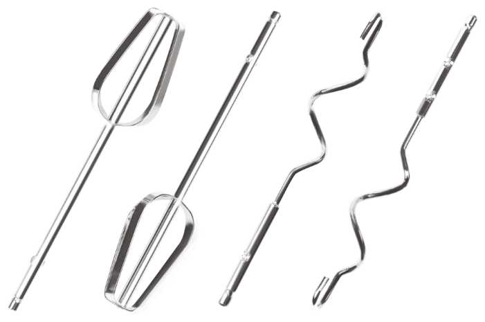 - Крюки для теста справляются с жидким и среднегустым тестом (например, для блинов или кексов), не деформируясь под нагрузкой.