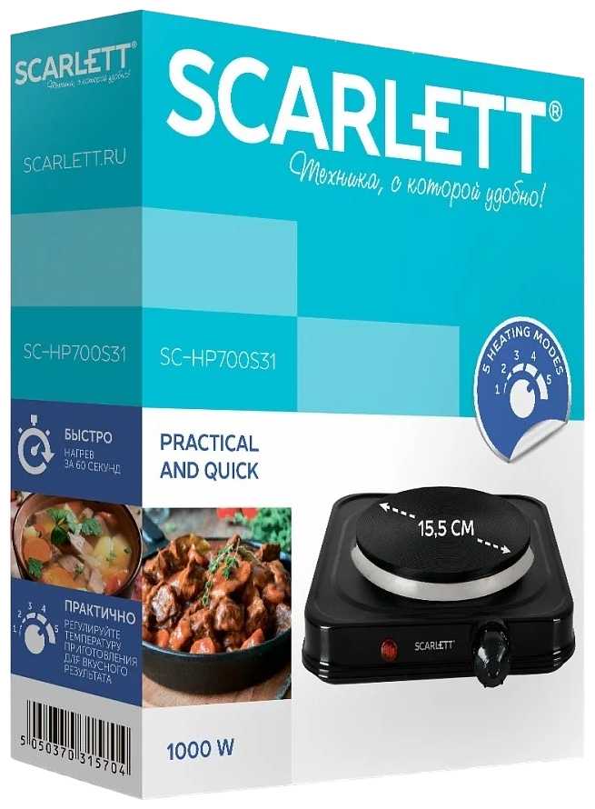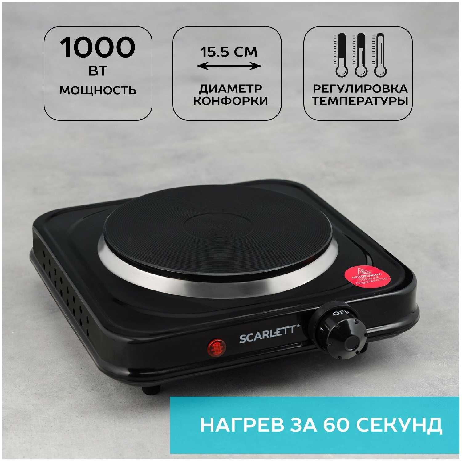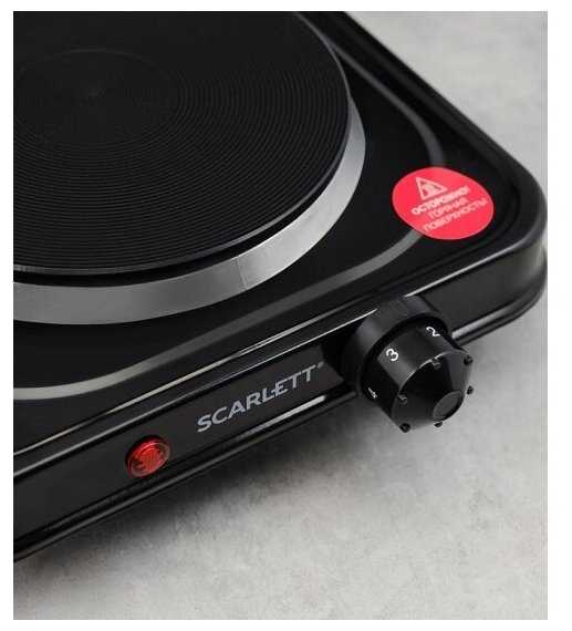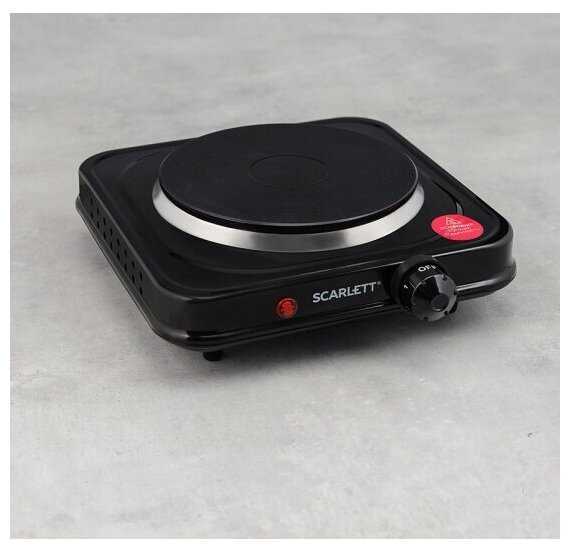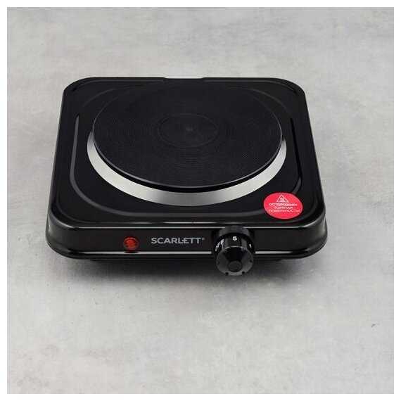 - Чугунная конфорка обеспечивает равномерное распределение тепла даже на максимальной мощности (до 1000 Вт).