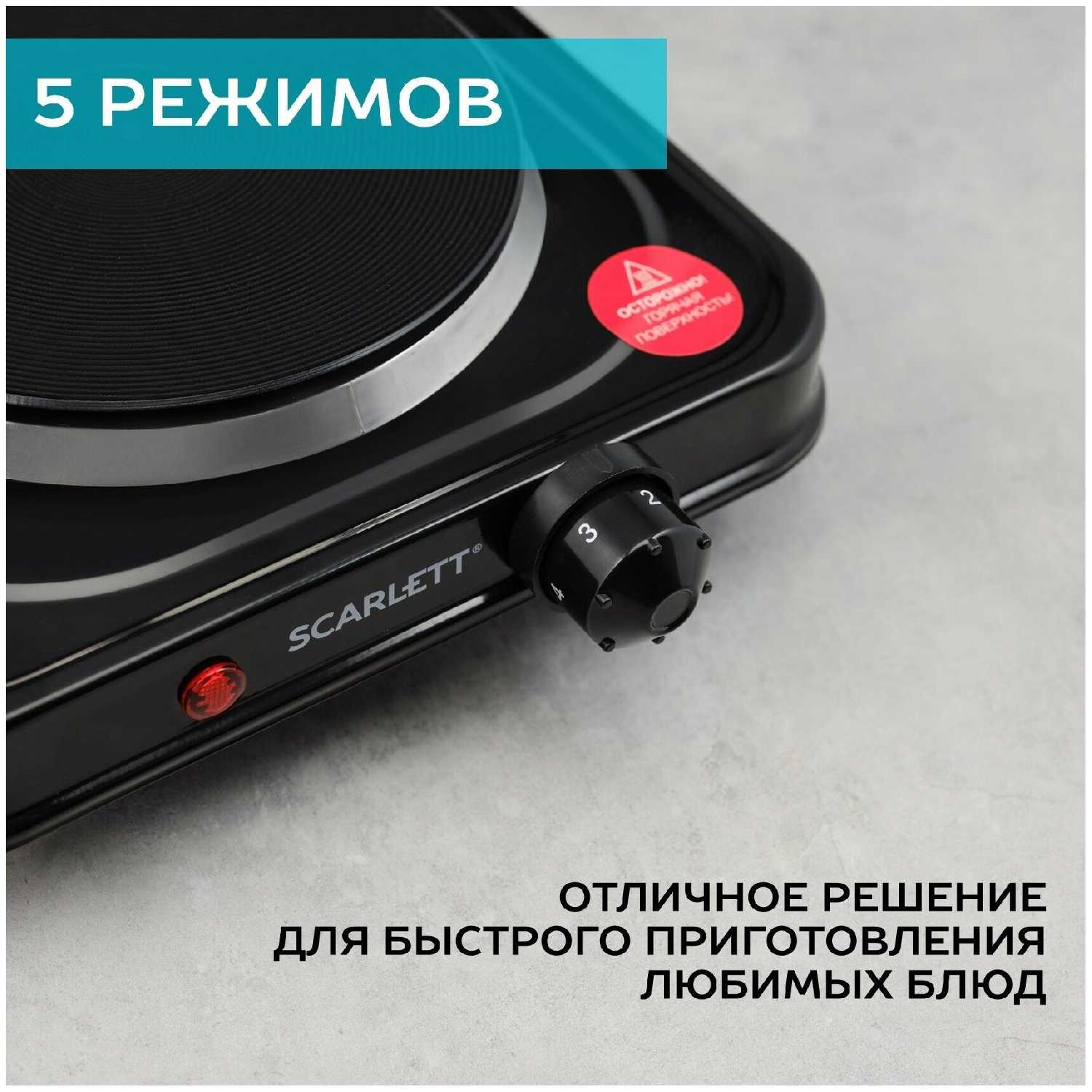 Плитка имеет пять ступеней нагрева, переключаемых механическим регулятором. Пользователи отмечают плавную настройку, но некоторые столкнулись с тугой регулировкой на отметке «2». Режимы позволяют подобрать оптимальную температуру для варки, тушения или жарки. -