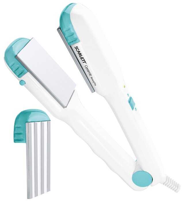 - + Керамические пластины, защита шнура от перекручивания, насадка для крупного гофре, защита от перегрева, стильный дизайн
