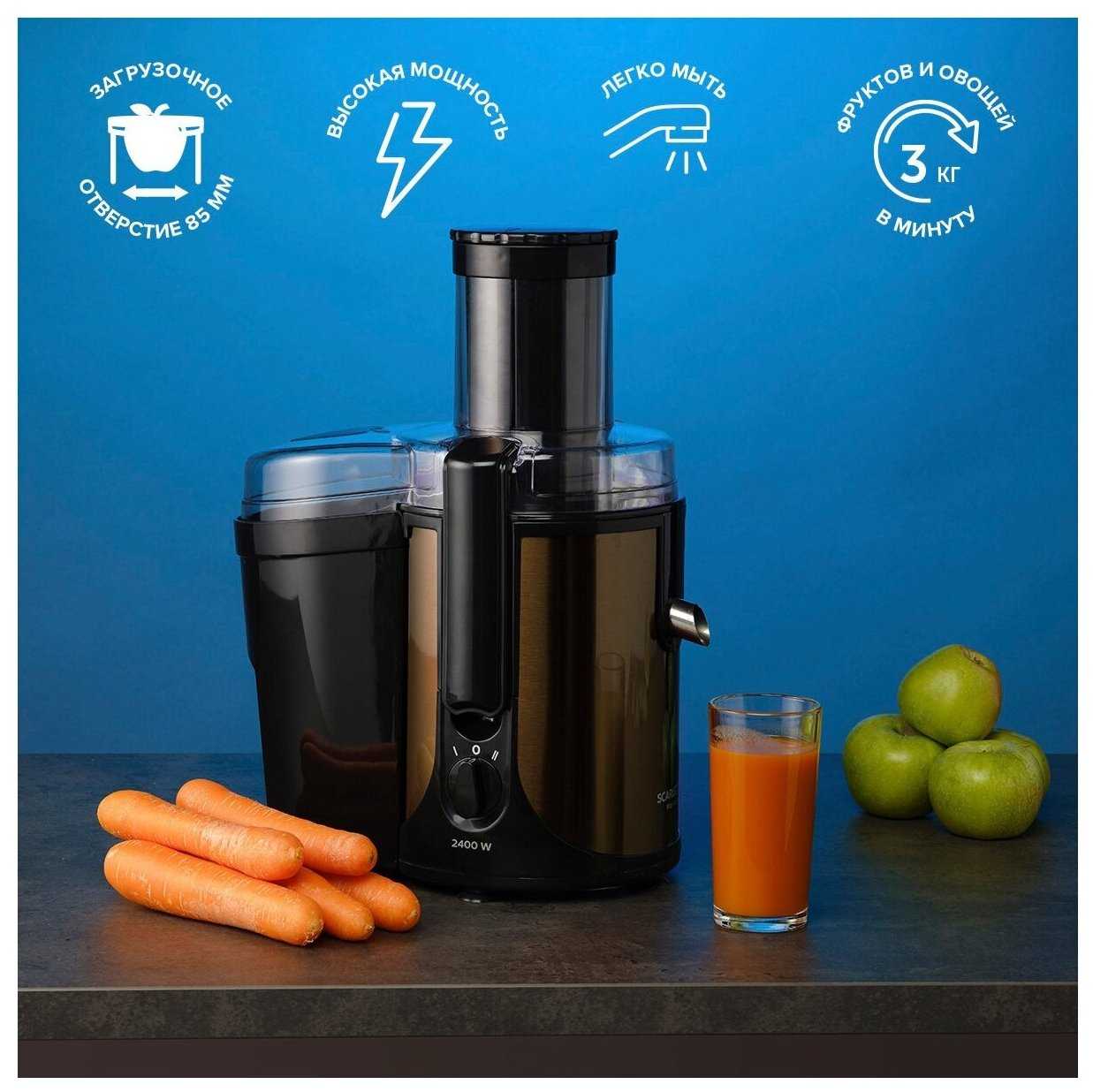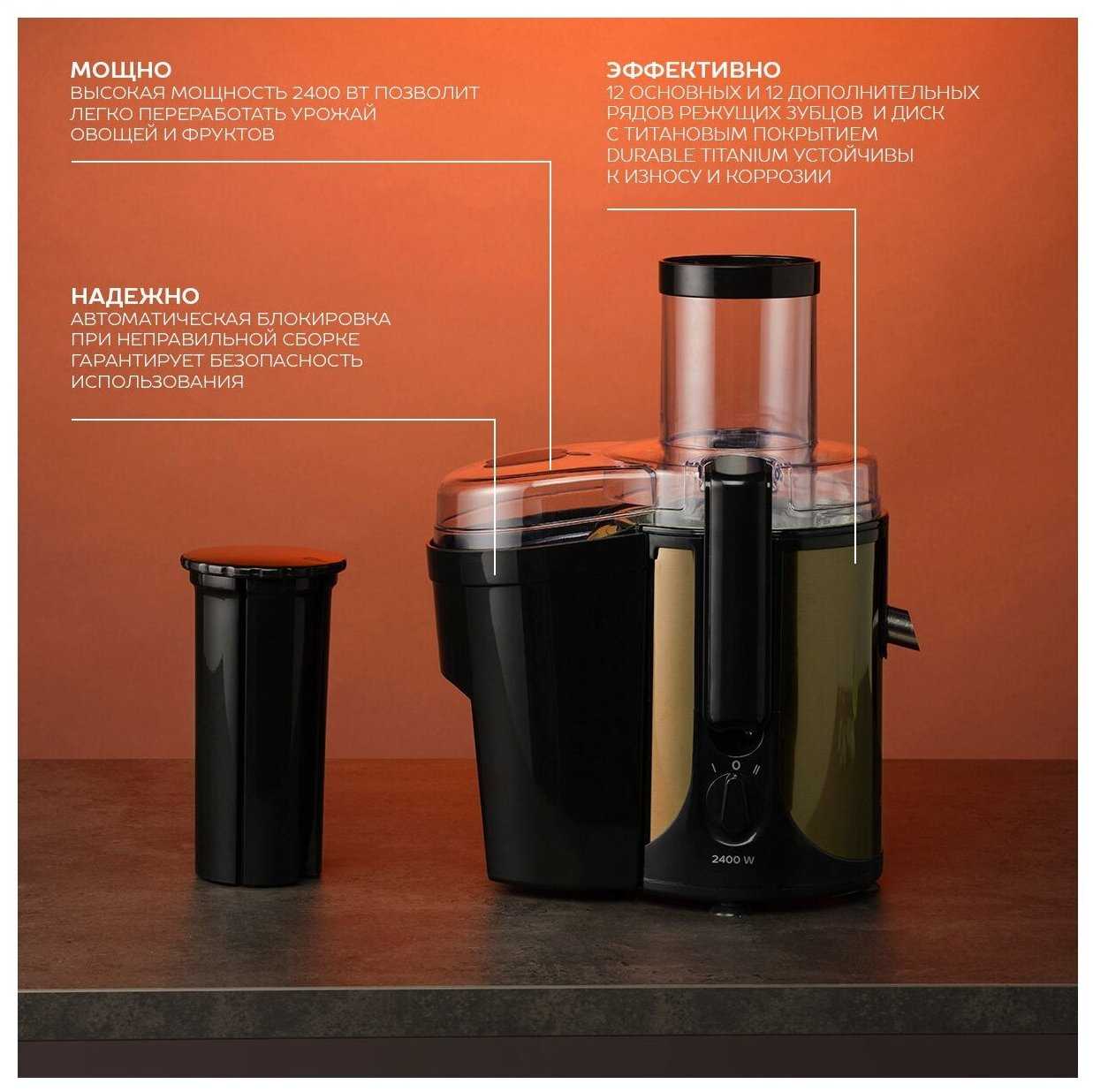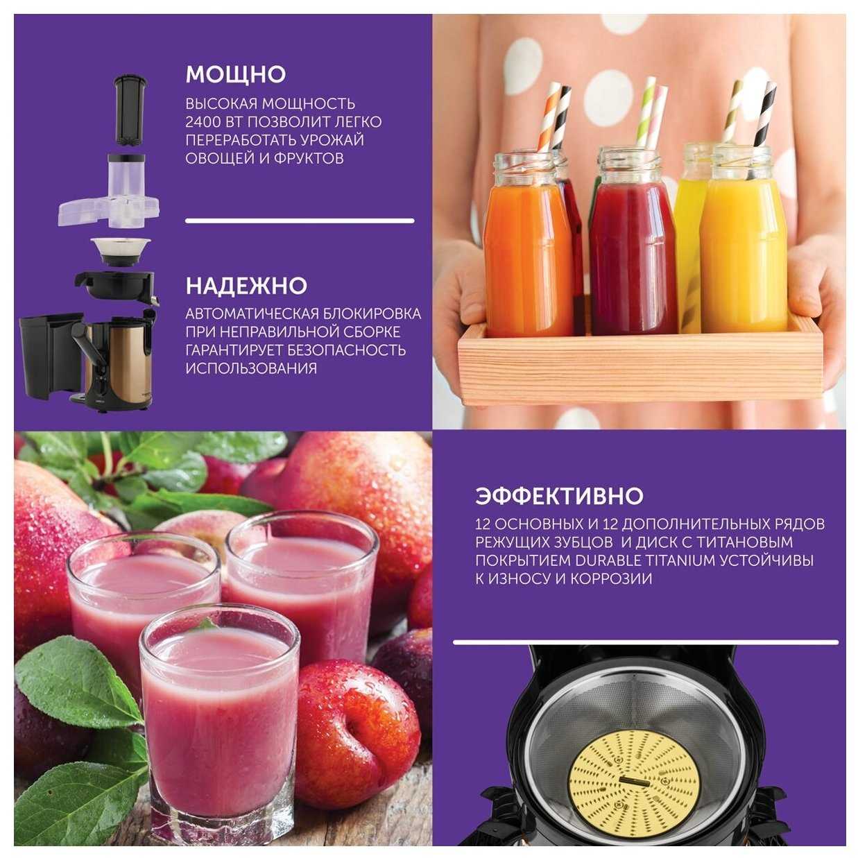 Π¨ΡΠΌΠ½ΠΎΡΡΡ ΡΡΡΡΠΎΠΉΡΡΠ²Π° (Π΄ΠΎ 85 Π΄Π) ΠΎΠ³ΡΠ°Π½ΠΈΡΠΈΠ²Π°Π΅Ρ Π΅Π³ΠΎ ΠΈΡΠΏΠΎΠ»ΡΠ·ΠΎΠ²Π°Π½ΠΈΠ΅ Π² ΡΠ°Π½Π½ΠΈΠ΅ ΡΠ°ΡΡ ΠΈΠ»ΠΈ Π² ΠΊΠ²Π°ΡΡΠΈΡΠ°Ρ Ρ ΡΠΎΠ½ΠΊΠΈΠΌΠΈ ΡΡΠ΅Π½Π°ΠΌΠΈ. ΠΠΈΠ±ΡΠ°ΡΠΈΡ, Π½Π΅ΡΠΌΠΎΡΡΡ Π½Π° ΡΠ΅Π·ΠΈΠ½ΠΎΠ²ΡΠ΅ Π½ΠΎΠΆΠΊΠΈ, ΡΠΌΠ΅ΡΠ°Π΅Ρ ΡΠΎΠΊΠΎΠ²ΡΠΆΠΈΠΌΠ°Π»ΠΊΡ Π½Π° Π³Π»Π°Π΄ΠΊΠΈΡ ΠΏΠΎΠ²Π΅ΡΡ Π½ΠΎΡΡΡΡ , ΡΡΠΎ ΡΡΠ΅Π±ΡΠ΅Ρ Π΄ΠΎΠΏΠΎΠ»Π½ΠΈΡΠ΅Π»ΡΠ½ΠΎΠ³ΠΎ ΠΊΡΠ΅ΠΏΠ»Π΅Π½ΠΈΡ. ΠΠ΄Π½Π°ΠΊΠΎ ΡΡΠΈ Π½Π΅Π΄ΠΎΡΡΠ°ΡΠΊΠΈ ΡΠ°ΡΡΠΈΡΠ½ΠΎ ΠΊΠΎΠΌΠΏΠ΅Π½ΡΠΈΡΡΡΡΡΡ Π²ΡΡΠΎΠΊΠΎΠΉ ΠΏΡΠΎΠΈΠ·Π²ΠΎΠ΄ΠΈΡΠ΅Π»ΡΠ½ΠΎΡΡΡΡ β Π½Π°ΠΏΡΠΈΠΌΠ΅Ρ, ΠΏΡΠΈΠ³ΠΎΡΠΎΠ²Π»Π΅Π½ΠΈΠ΅ 3 Π» ΠΌΠΎΡΠΊΠΎΠ²Π½ΠΎ-ΡΠ±Π»ΠΎΡΠ½ΠΎΠ³ΠΎ ΡΠΎΠΊΠ° Π·Π°Π½ΠΈΠΌΠ°Π΅Ρ ΠΌΠ΅Π½Π΅Π΅ 15 ΠΌΠΈΠ½ΡΡ. Π‘Π΅ΠΏΠ°ΡΠ°ΡΠΎΡ ΠΏΠ΅Π½Ρ ΡΠ°Π±ΠΎΡΠ°Π΅Ρ ΡΡΡΠ΅ΠΊΡΠΈΠ²Π½ΠΎ, ΡΠ°Π·Π΄Π΅Π»ΡΡ ΡΡΠ°ΠΊΡΠΈΠΈ, Π½ΠΎ ΠΏΠΎΠ»ΡΠ·ΠΎΠ²Π°ΡΠ΅Π»ΠΈ ΠΎΡΠΌΠ΅ΡΠ°ΡΡ, ΡΡΠΎ Π΄Π»Ρ ΠΏΠΎΠ»Π½ΠΎΠΉ ΠΏΡΠΎΠ·ΡΠ°ΡΠ½ΠΎΡΡΠΈ ΡΠΎΠΊ Π²ΡΠ΅ ΠΆΠ΅ ΠΏΡΠΈΡ ΠΎΠ΄ΠΈΡΡΡ ΡΠΈΠ»ΡΡΡΠΎΠ²Π°ΡΡ ΡΠ΅ΡΠ΅Π· ΠΌΠ°ΡΠ»Ρ.