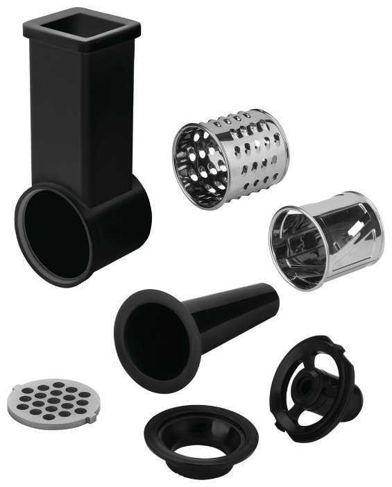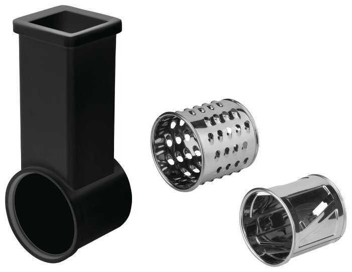 Дополнительно есть крупная терка и насадка для шинковки, но это так, на любителя. Например, капусту шинкует качественно, однако стакан насадки забивается, приходится его вручную освобождать от нарезанной капусты. В итоге по времени получается чуть быстрее, чем руками нашинковать. Но все равно - клево :)