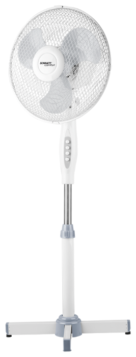 - Крестообразная металлическая подставка с резиновыми накладками обеспечивает стабильность, вентилятор не падает и не царапает пол даже на максимальной скорости.