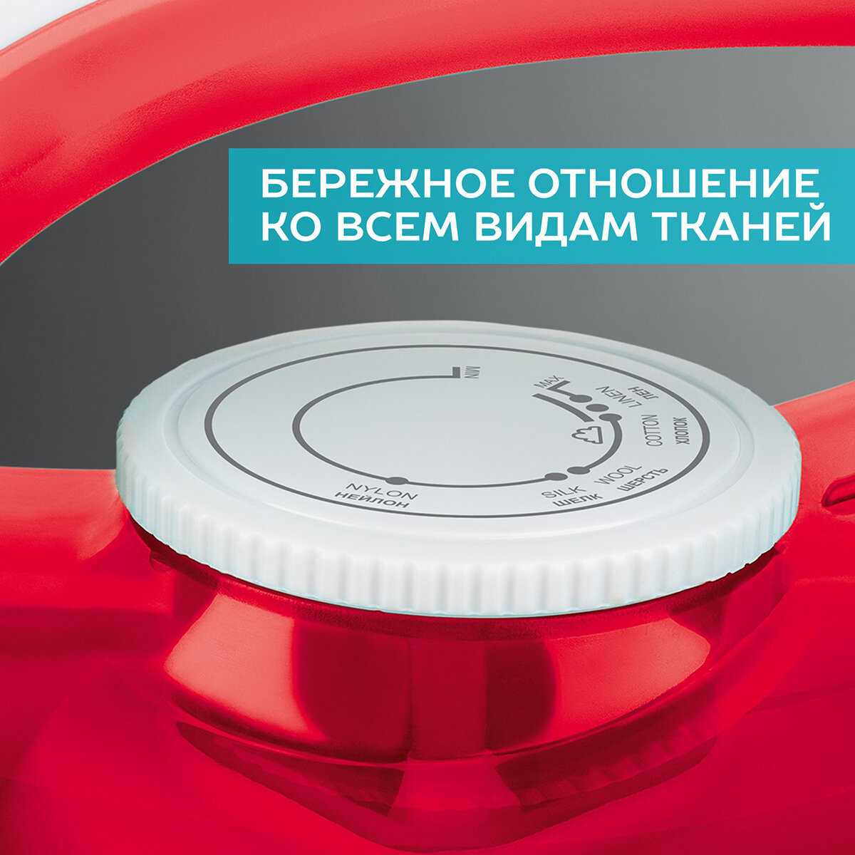 Вес и компактность корпуса являются ключевыми характеристиками, отмеченными подавляющим большинством пользователей. Модель описывается как легкая и небольшая по сравнению со стандартными утюгами, что делает ее удобной для продолжительной глажки, так как рука практически не устает. Компактные размеры также рассматриваются как преимущество для хранения и потенциального использования в поездках. Эргономика ручки оценивается положительно, утюг хорошо и уверенно лежит в руке. Конструктивные элементы и управление в основном продуманы. Длинный шнур с шарнирным креплением, который не перекручивается, упрощает процесс глажки, особенно если розетка расположена не близко. Широкое горлышко резервуара облегчает его заполнение водой. Однако в этой сфере выявлены и серьезные недостатки. Наиболее проблемным элементом, согласно многочисленным отзывам, является кнопка подачи пара. Пользователи сообщают о ее частом заедании, проваливании и окончательном выходе из строя после непродолжительного использования, что полностью лишает утюг одной из основных функций. Также встречаются жалобы на непрочную или неудобно открывающуюся крышку для залива воды, которая может отваливаться или с трудом закрываться после некорректного обращения. Визуальное исполнение – яркий, чаще всего красный цвет – многими пользователями воспринимается положительно, как поднимающий настроение и облегчающий поиск прибора.