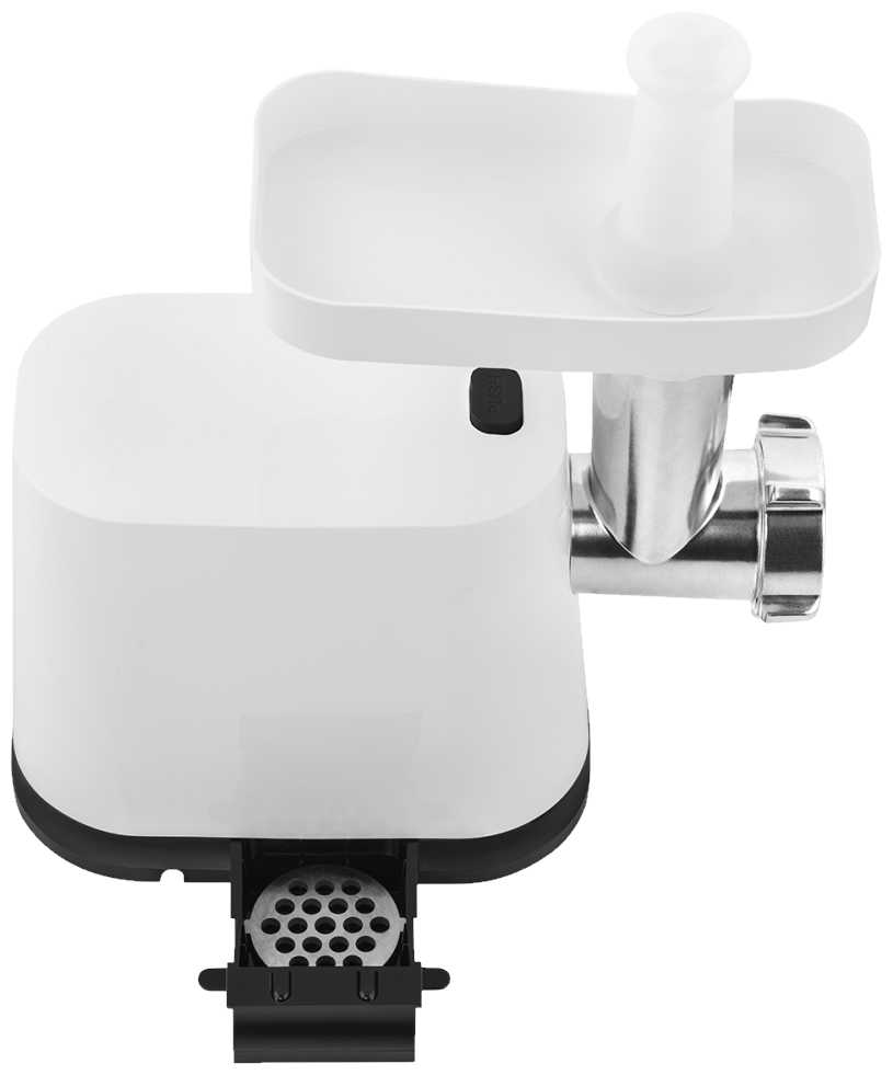 - Нож из нержавеющей стали обеспечивает однородную консистенцию без «давки» мяса.