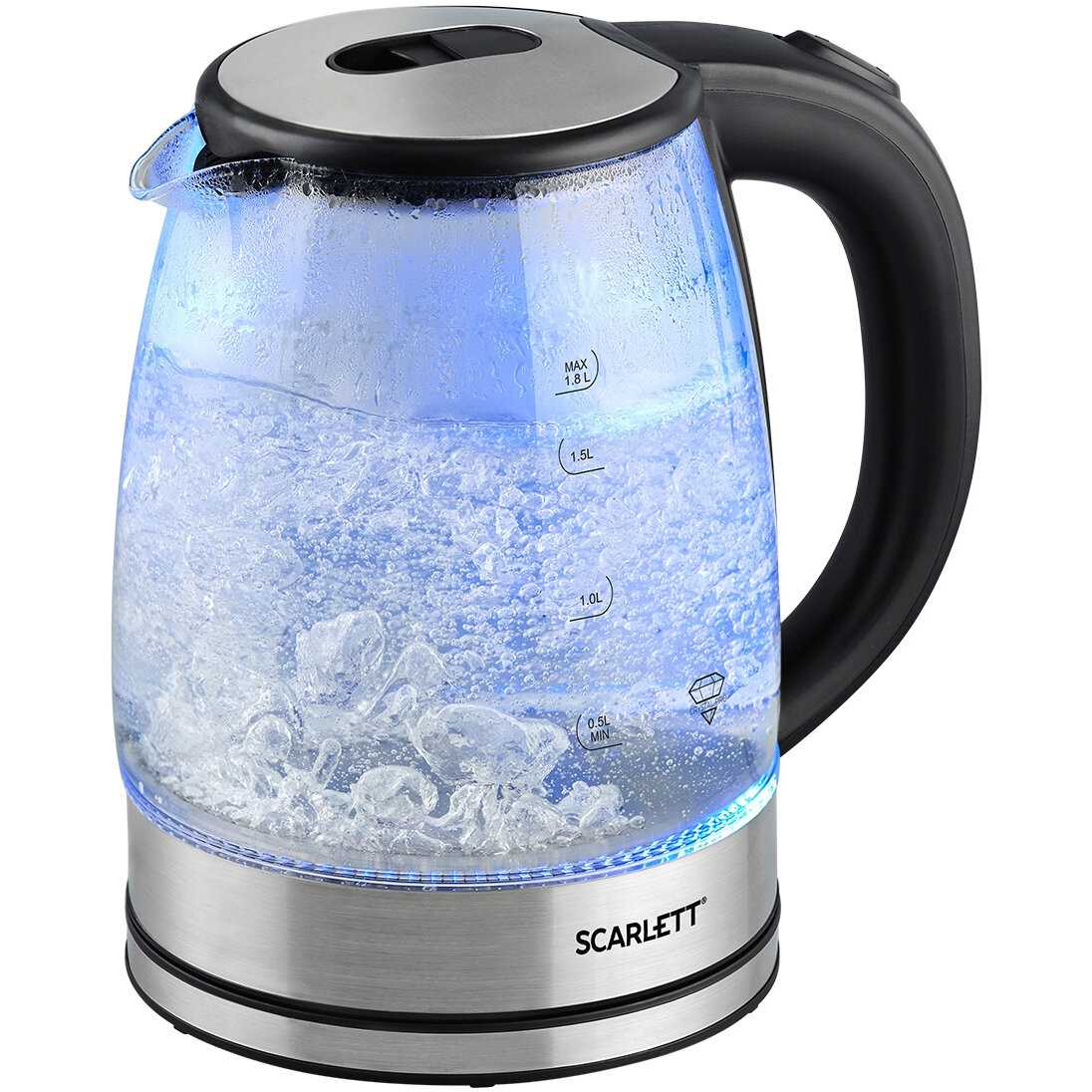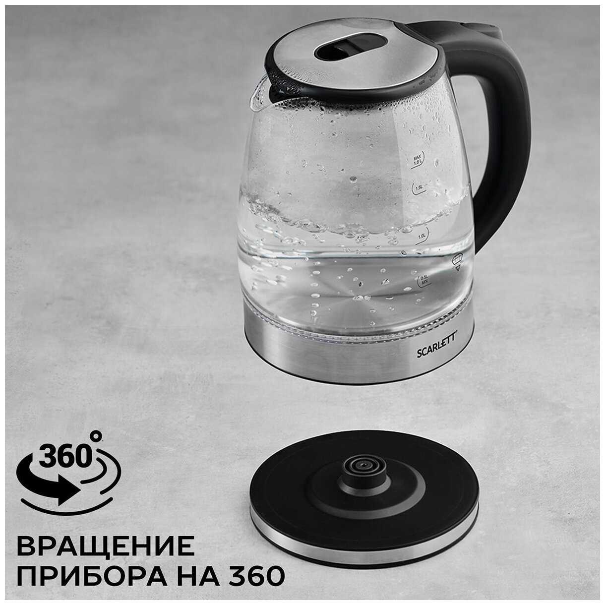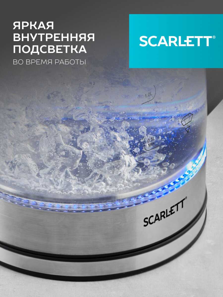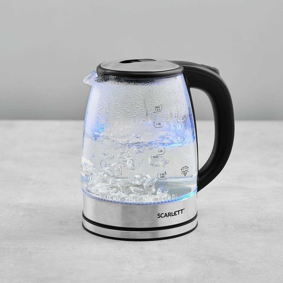 Синяя внутренняя подсветка включается автоматически при запуске и ярко освещает кипящую воду, создавая декоративный эффект. Пользователи ценят её за эстетику (особенно в темноте), но днём свечение может быть менее заметным. Подсветка не влияет на функциональность и работает стабильно на протяжении всего срока службы чайника. -