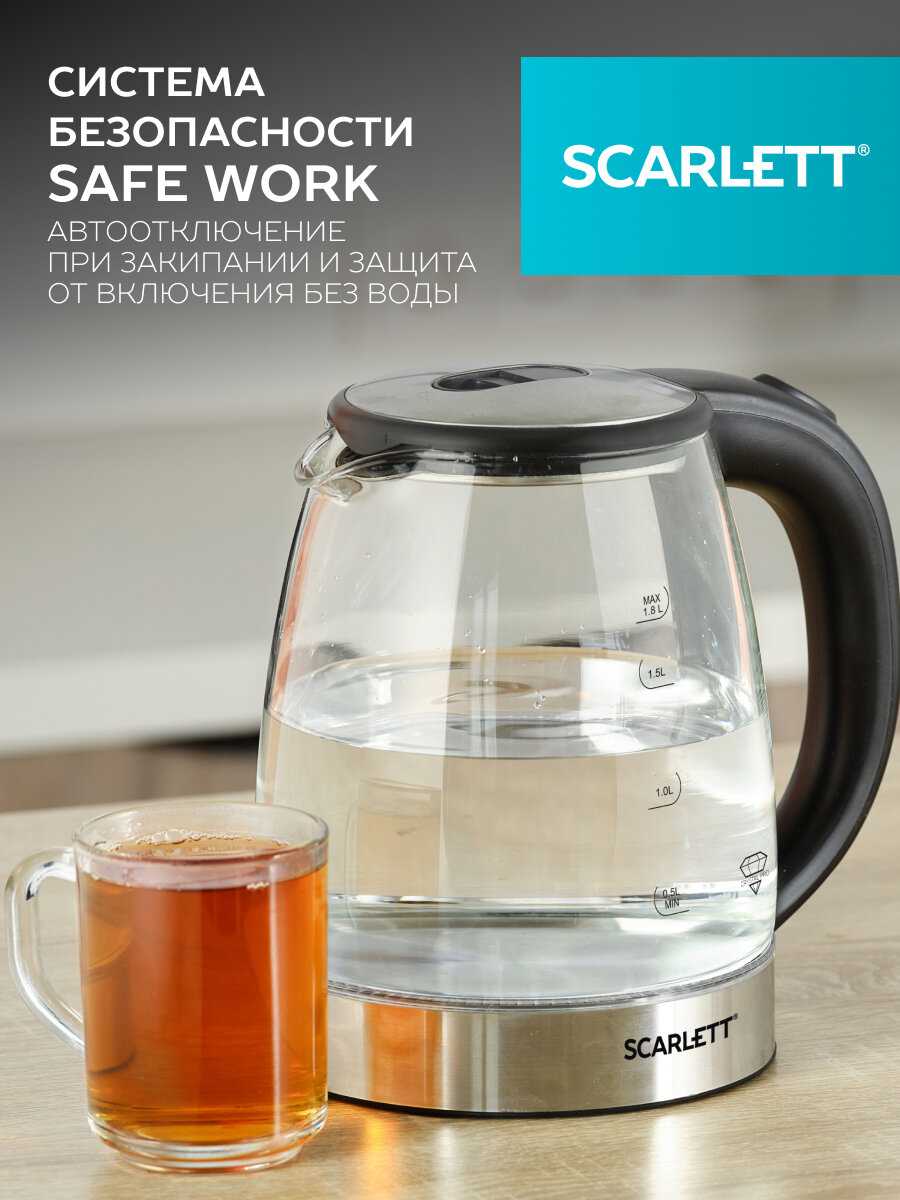 Нагрев шнура питания и контактов подставки — тревожный фактор, отмеченный в нескольких отзывах. Защита от включения без воды работает корректно, но общая электротехническая надёжность вызывает вопросы. Шум при кипячении оценивается как умеренный, однако ближе к моменту закипания возможен свист из-за вибрации крышки. Эргономика ручки признана удачной: она не нагревается при работе, а форма носика минимизирует протечки при аккуратном наливании.