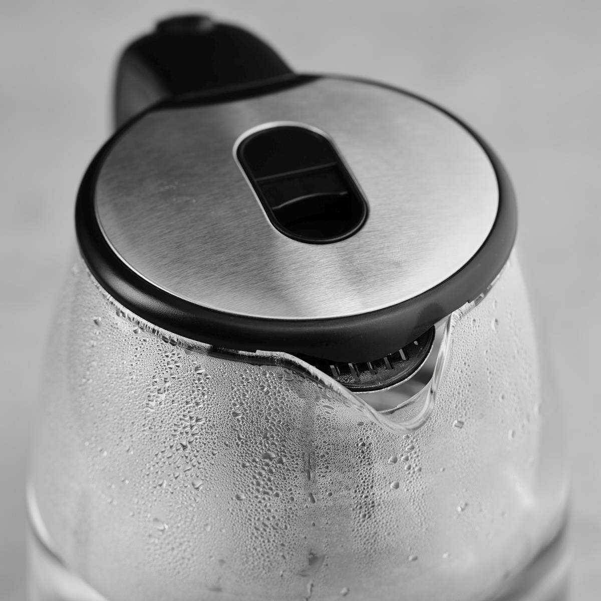 Мощность 2200 Вт обеспечивает приемлемую скорость нагрева: 2 литра воды закипают за 5-7 минут в зависимости от начальной температуры. Однако при заполнении до максимальной отметки наблюдается активное разбрызгивание через носик, что вынуждает ограничивать объём 1,7 литрами. Скрытый нагревательный элемент быстро покрывается накипью (уже после 3-5 кипячений), причём обычная очистка не даёт долговременного эффекта. Система автоотключения работает нестабильно — некоторые владельцы отмечали продолжение кипячения после достижения 100°C.