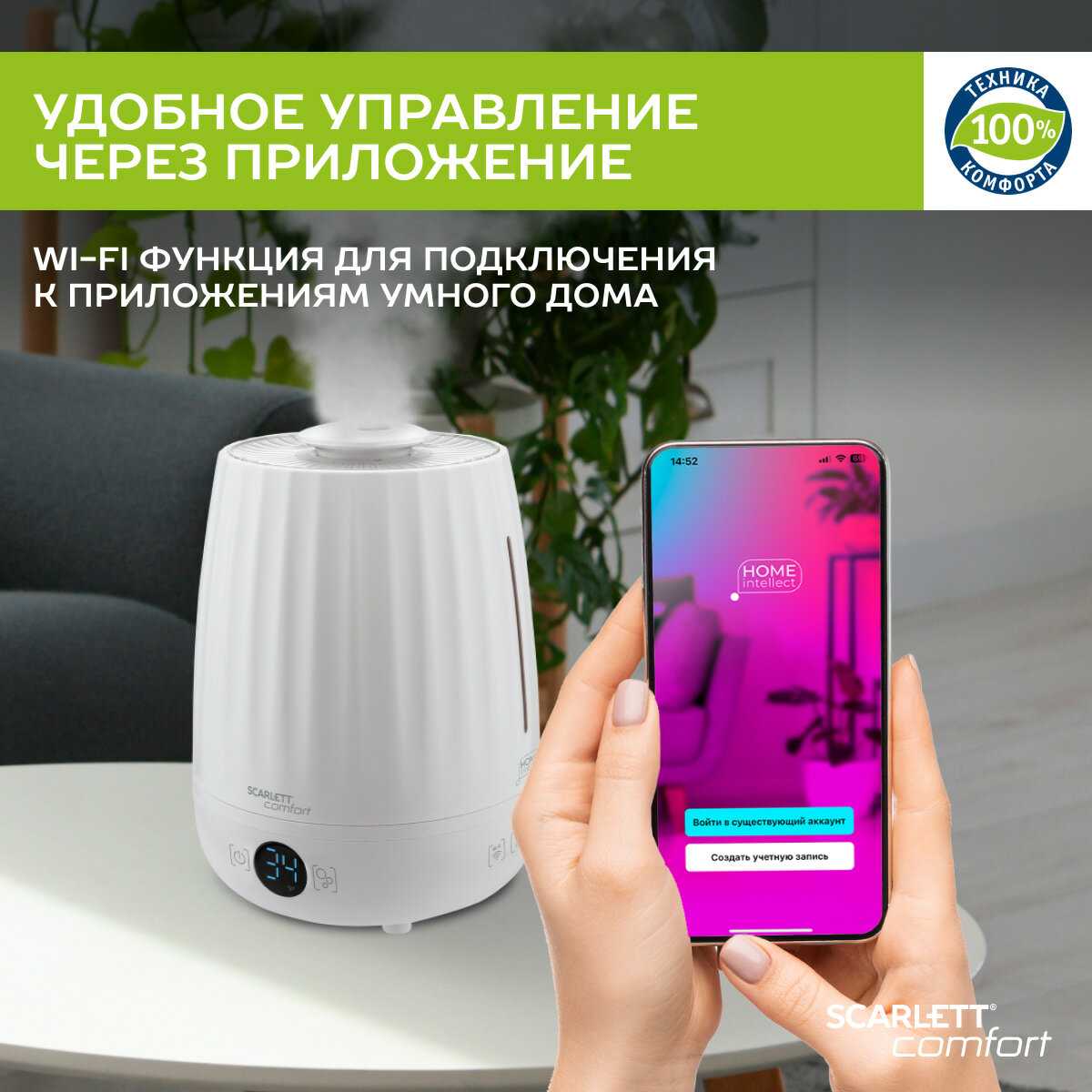 Подключение к приложению проходит быстро у большинства, но не всегда интуитивно. Возникают разрывы Wi-Fi, устройство не видит сеть, настройки сбрасываются. Управление с телефона удобно после настройки. Некоторые не смогли настроить уровень влажности стабильно. Стабильность зависит от экземпляра. -