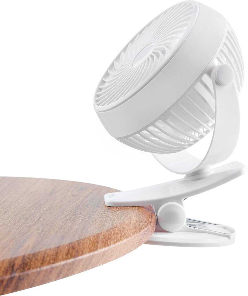 Ключевые отличия: комбинированное крепление (подставка + прищепка), поворот 360° с фиксацией и съемный аккумулятор. Благодаря этому вентилятор можно зафиксировать на неровных поверхностях (например, трубе отопления), чего не позволяют модели только на присосках.