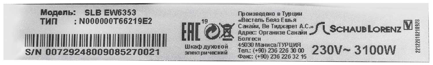 Отзывы о Встраиваемая Духовка Schaub Lorenz SLB EW6353