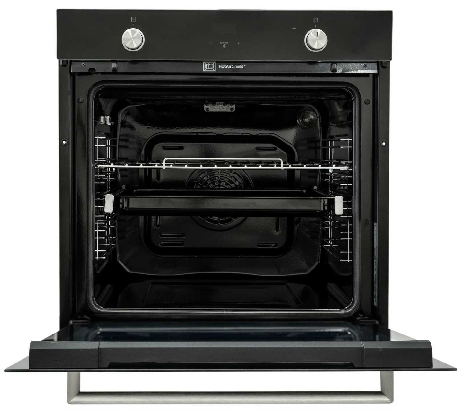 - Объём 69 литров позволяет готовить несколько блюд одновременно (например, два противня с пирогами или пиццу на двух уровнях).