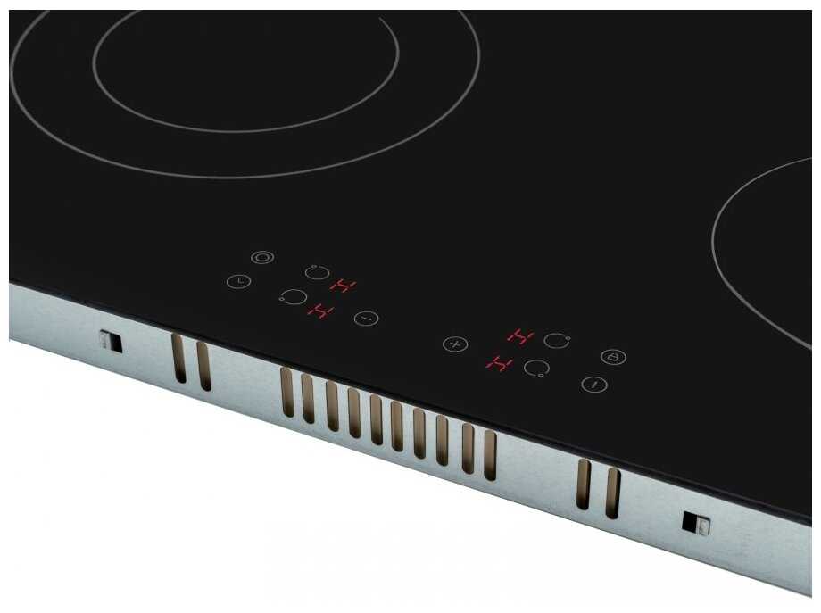 - + четыре конфорки две из которых расширяемые. одна круглая, вторая овальная под утятницу. есть таймер. блокировка управления от детей и домашних животных.
