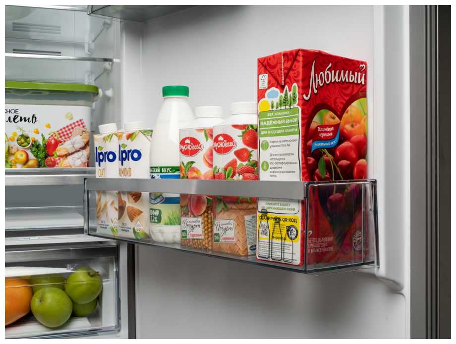 Не оставляет отпечатков пальцев на дверцах, нет конденсата внутри холодильника. Очень удобное расположение полок, есть отсек для льда в морозильной камере, правда за счет этого места в камере чуть меньше, но нам хватает. Угол открытия дверей 90 градусов, мы без проблем встроили наш холодильник в нишу, все работает!
