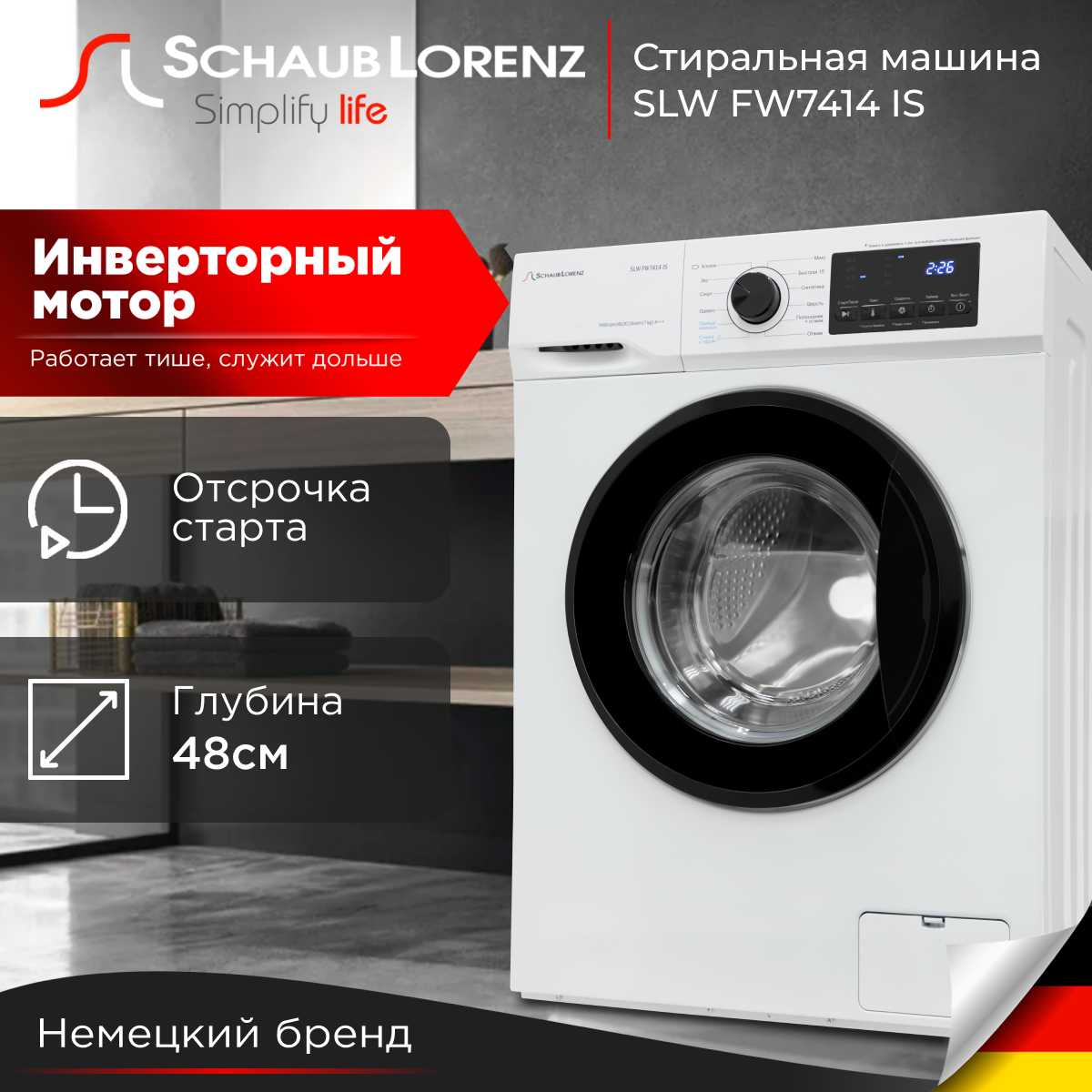 Стиральная машина Schaub Lorenz SLW FW7414 IS, 7 кг, 1400 об, инвертор, Функция пара (Steam Assist), 12 программ — 67 отзывов, плюсы и минусы