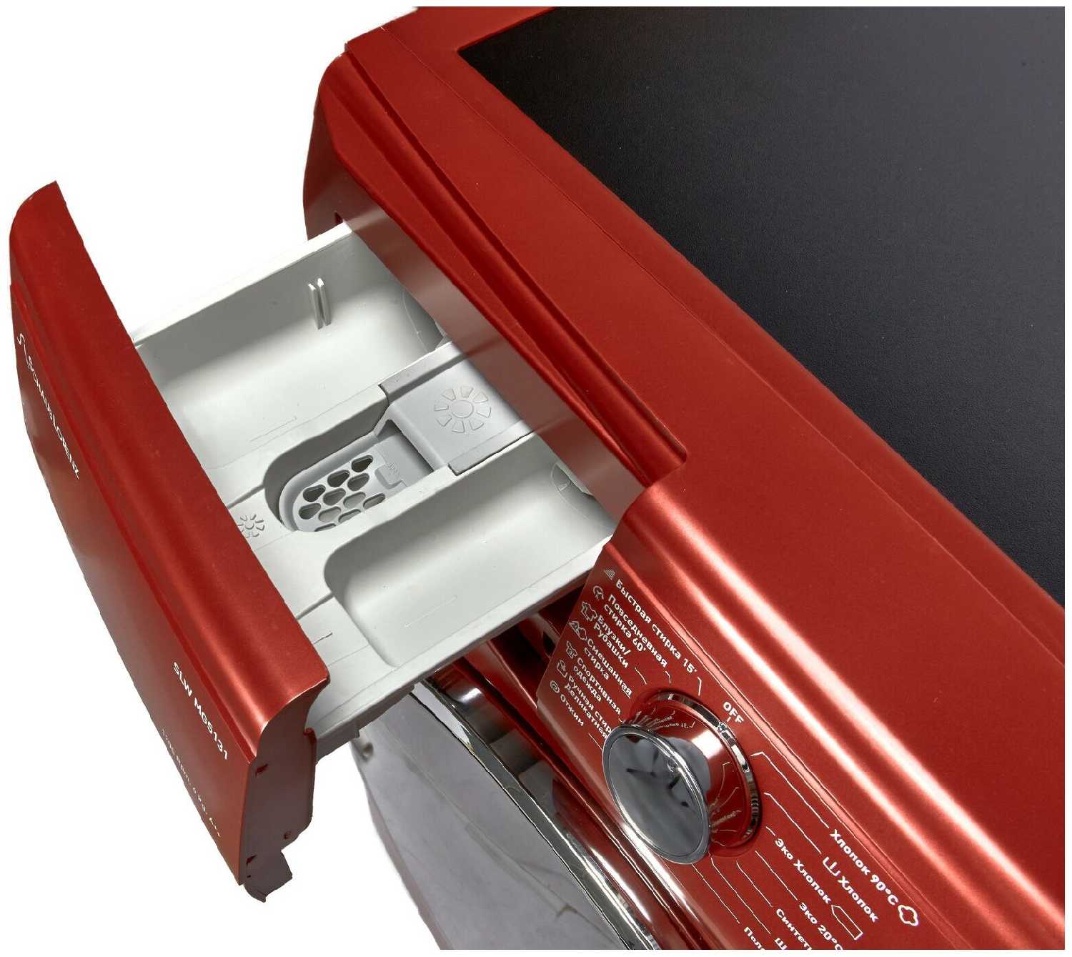 - + Очень богатый дизайн! Смотрится дорого! Плотно-тёмный красный цвет,удобная панель управления и указательное табло(дисплей). Габариты этой узкой машинки легко позволяют разместить её в любом помещении. Программ стирки(=15) вполне достаточно. Действительно тихая!