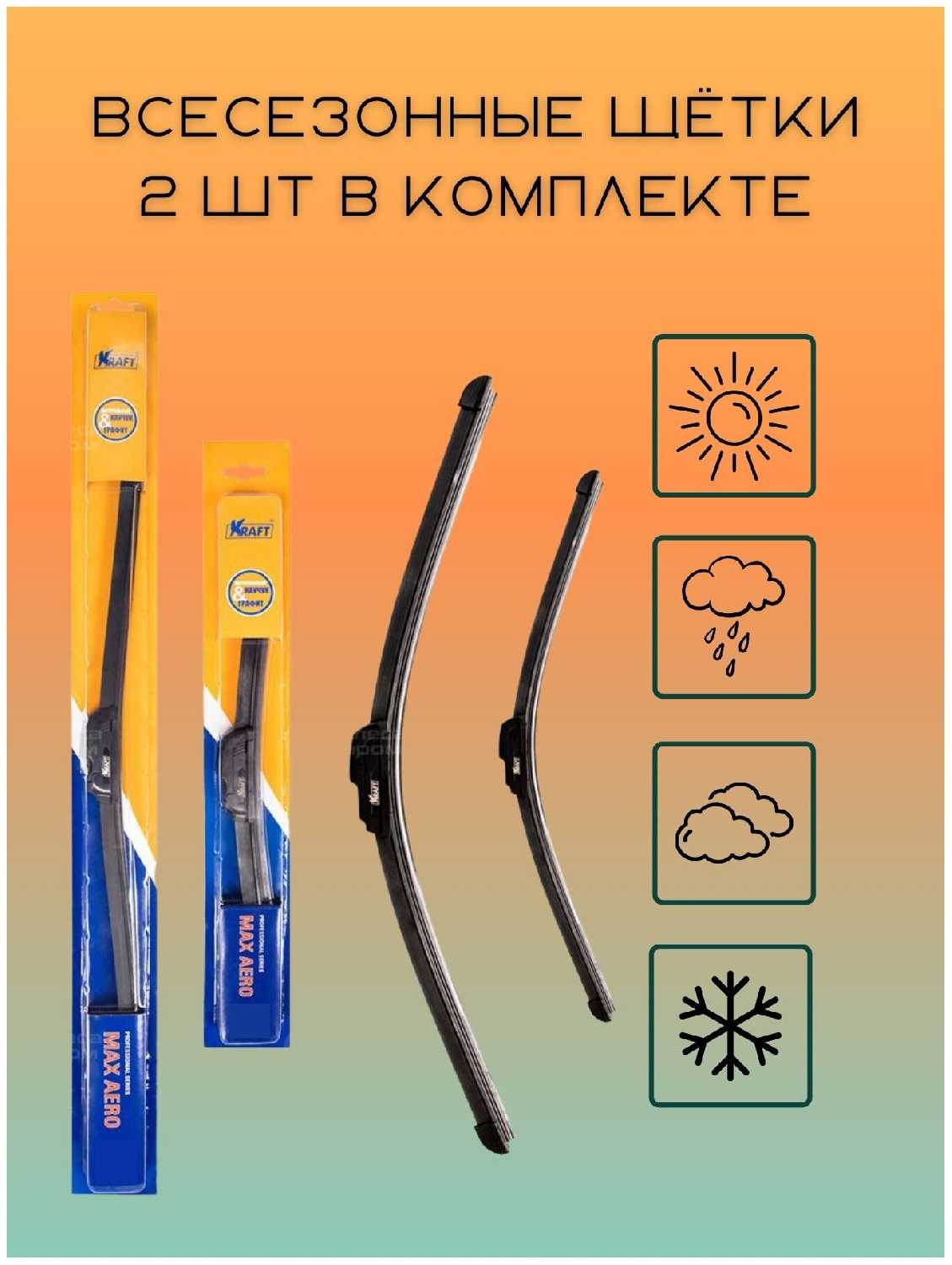KRAFT Дворники автомобильные для Volkswagen Polo 2010- (комплект 600/400 мм. Крючок)