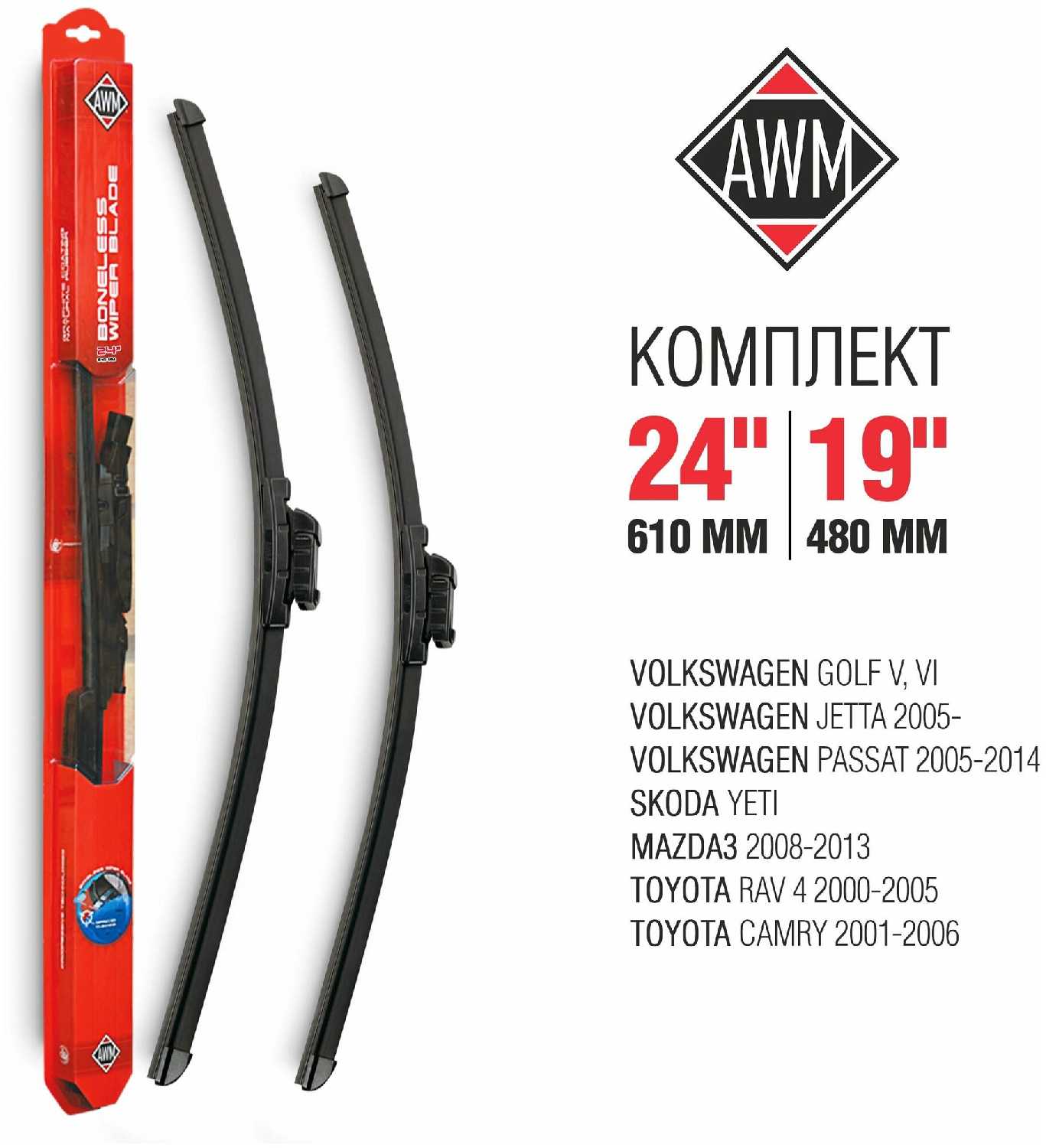 AWM Комплект бескаркасных щеток стеклоочистителя (600/480 мм)