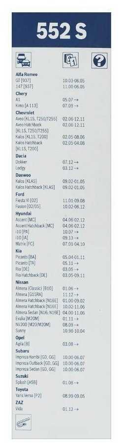 Характеристики:- модель автомобиля: Daewoo Nexia