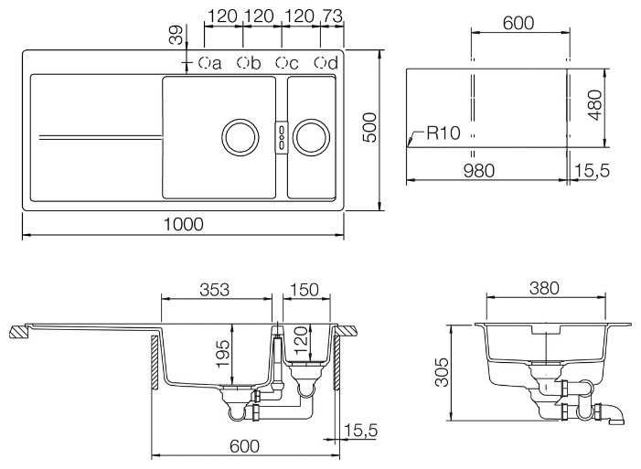 Характеристи Schock Horizont D-150, 50х100см, искусственный гранит