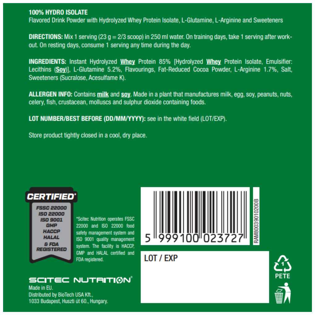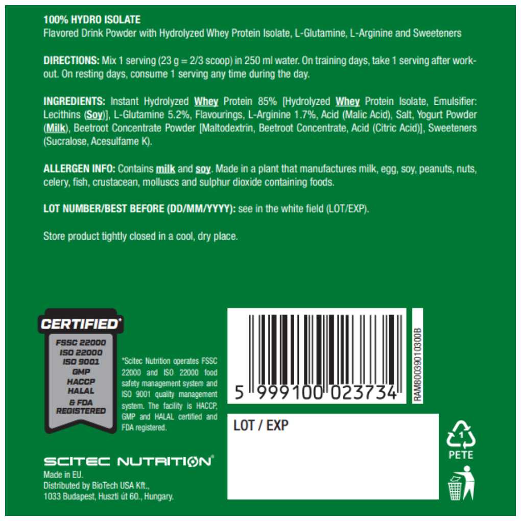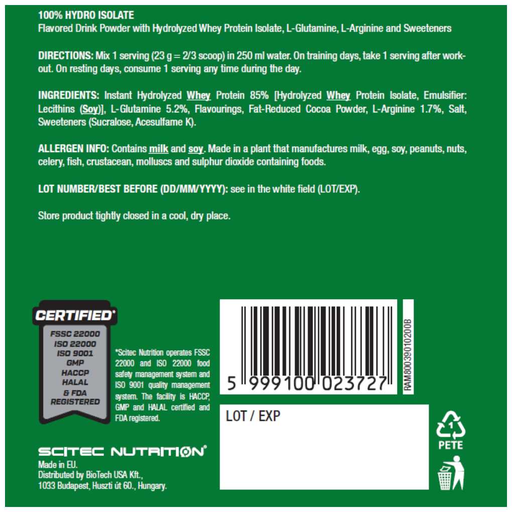 Характеристи Scitec Nutrition 100% Hydro Isolate (700 гр)