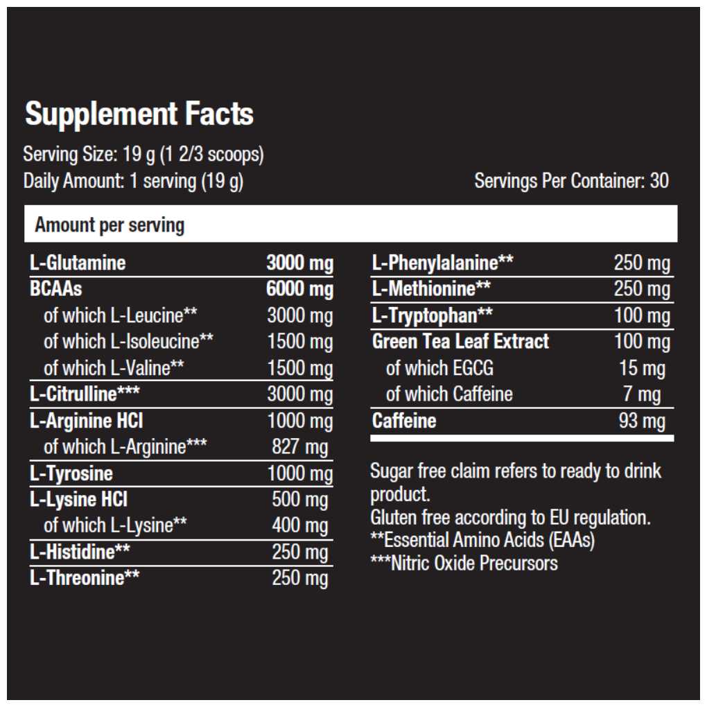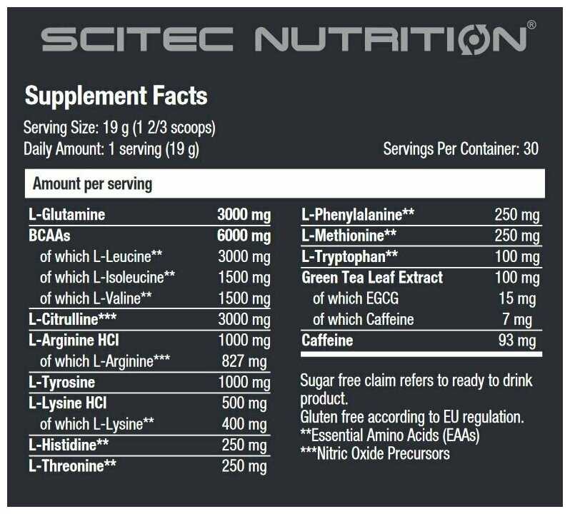 Основной ингредиент : | цитруллин, тирозин, триптофан, метионин, гистидин, треонин, тианин, фенилаланин, аргинин, лизин, глутамин, изолейцин, лейцин, валин |