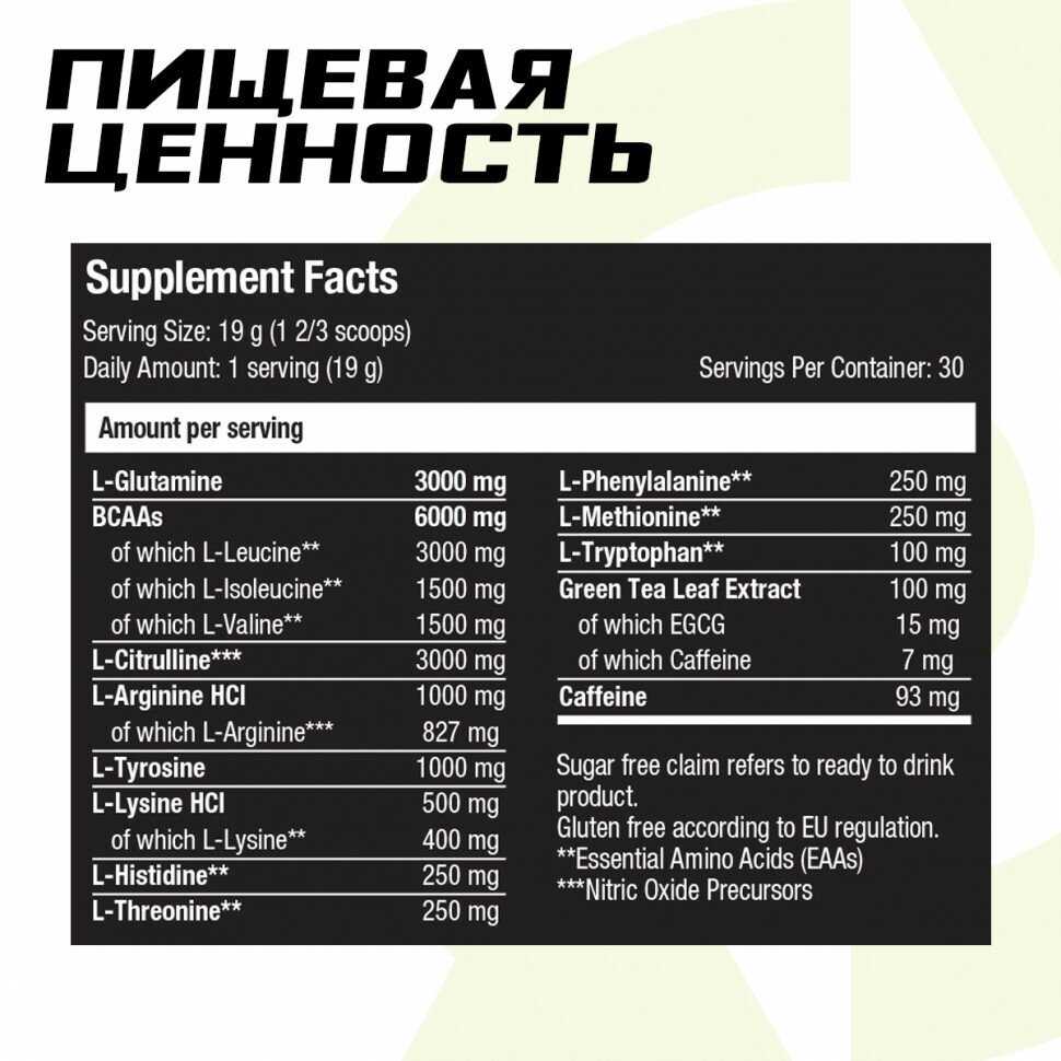 - + Годные аминки + есть буст в виде кофеина и экстракта зеленого чая)