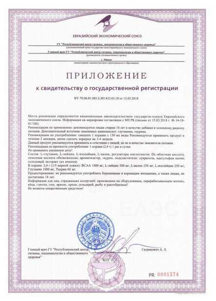 Основной ингредиент : | таурин, глутамин, изолейцин, лейцин, валин |